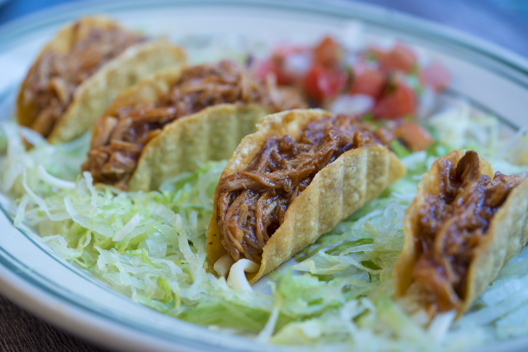 Bite size hard Corn Tacos with Monterey Jack Cheese & choice of filling