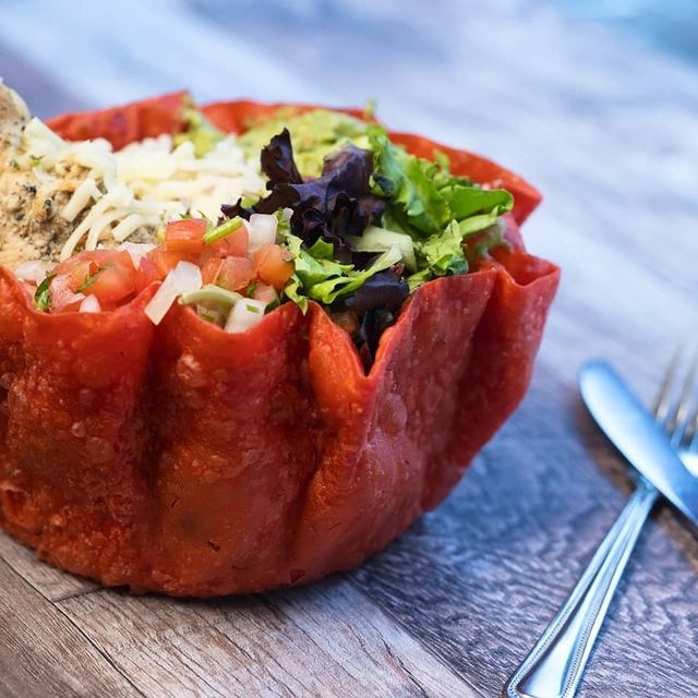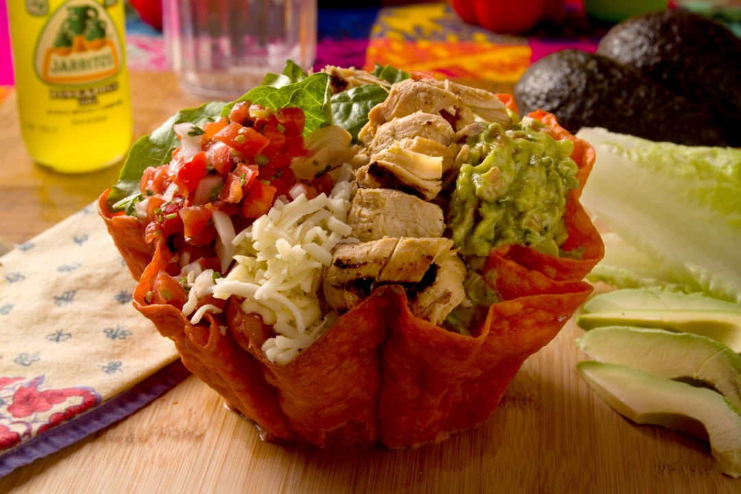 Fresh Romaine, pico de gallo and guacamole served in a crisp tortilla shell, topped with shredded Jack cheese.