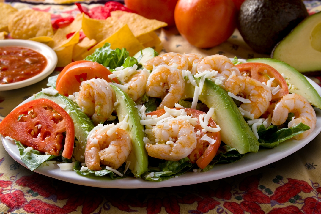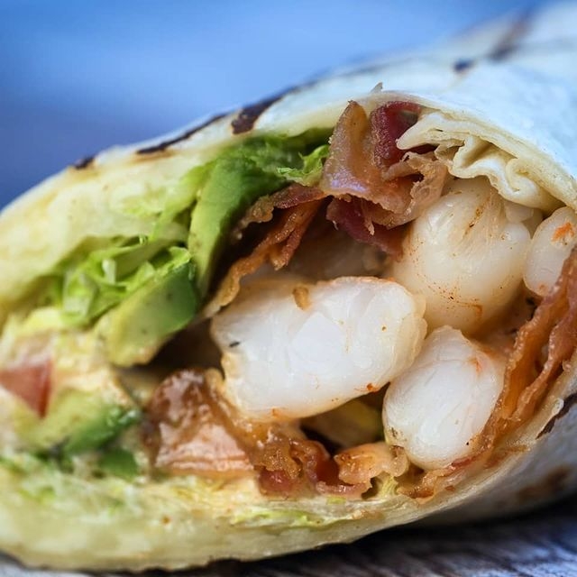 Shrimp, fresh avocado slices, BACON, Monterey Jack cheese, lettuce & tomatoes wrapped in a flour tortilla. Chips & Salsa on the Side.