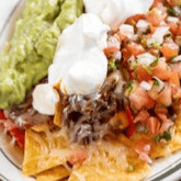 Corn Chips Made Daily Topped with Veggie Chili, Melted Monterey Jack cheese, Pico de gall, Guac & Sour Cream