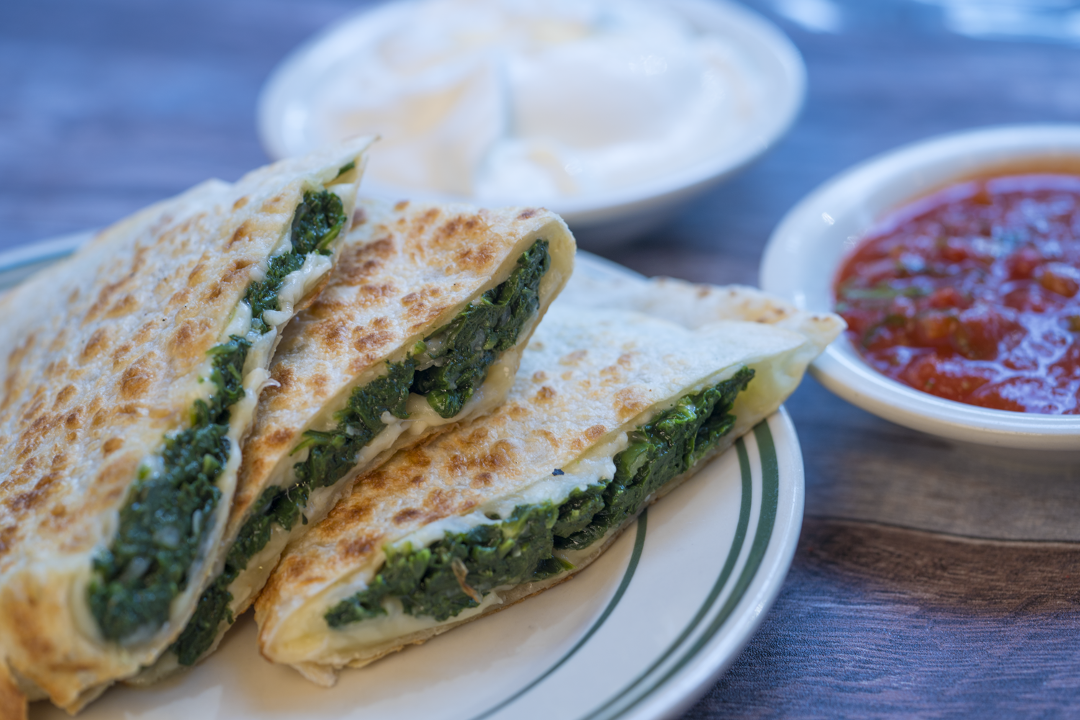 Flour Tortilla with Spinach (sauteed with onions & garlic) & Melted Monterey Jack Cheese- Salsa Bambino on the side