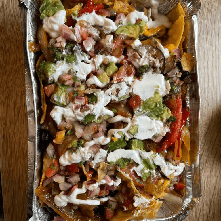 Nacho cheese sauce, beans, avocado, pico de gallo, shredded cheese & sour cream