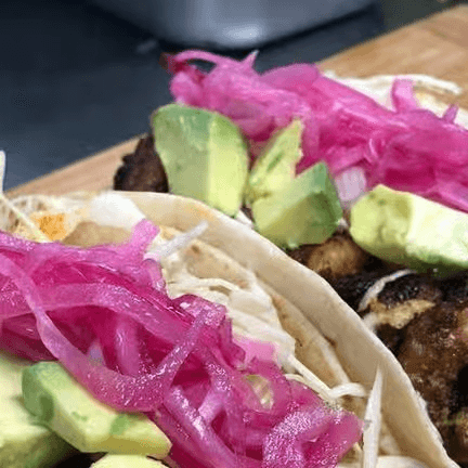 (2).Cabbage, pickled onions, avocado & cream lime sauce